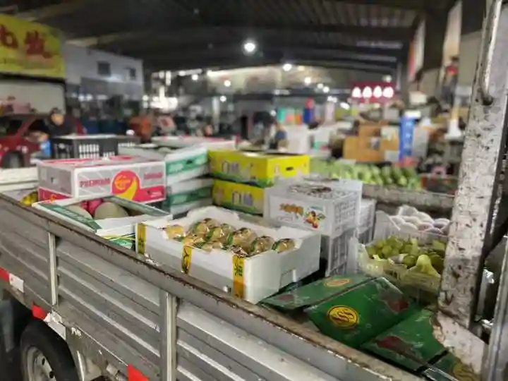 市场里的客人们一眼就看得出不同,只要你仔细端详他们用什么装水果:拖着小购物车的,是住在附近的居民或者散客;开私家车的,是自己来给全家亲友囤货的;骑电动车的,一般是帮忙取货、跑腿的;拉着平板车、三轮车,是帮水果店送货的……