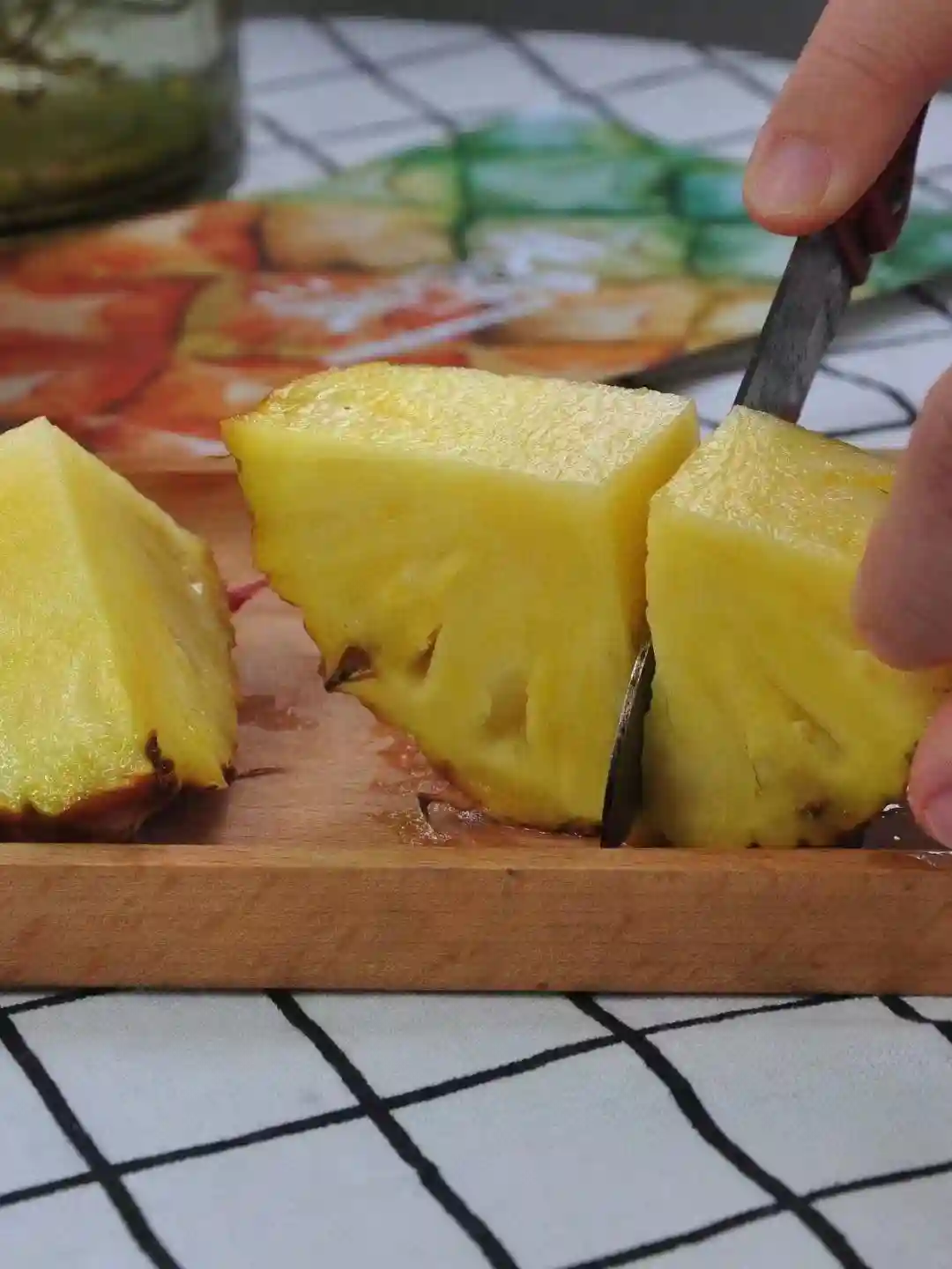 用水果刀切掉凤梨头尾