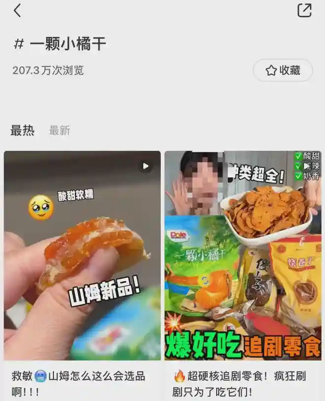 目前,在小红书上,#一颗小橘干的话题已经有超200万次浏览量;在微博上,也出现了“山姆橘子干”搜索关键词。