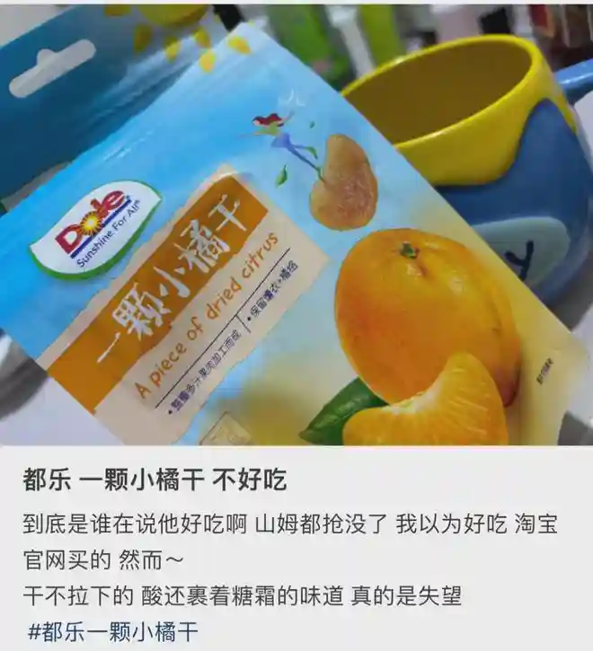 不论好吃与否,「一颗小橘干」在网友的争论声中,热度高了起来。在山姆没有买到「一颗小橘干」的网友们,甚至“转战”天猫Dole都乐食品旗舰店去买。