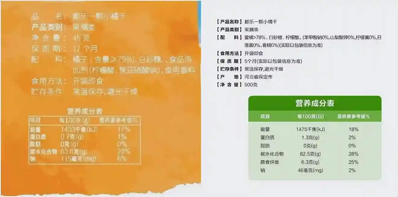 值得注意的是,目前,在天猫Dole都乐食品旗舰店中,45g一颗小橘干的配料表为橘子(含量≥75%)、白砂糖、食品添加(柠檬酸、焦亚硫酸钠)、食用香料。相比之下,山姆版本减少了添加剂的使用,且在包装上标明有“减糖30%”的字样。