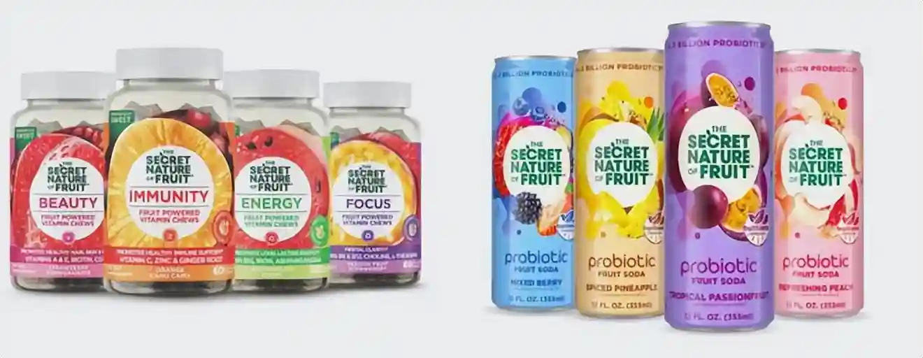 2023年,美国Dole就推出了“TheSecretNatureofFruit®”这一功能性品牌,旨在利用果蔬的营养成分打造功能性产品,并推出水果维生素咀嚼片和益生菌苏打水。[11]