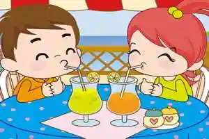 喝果汁的儿童卡通图