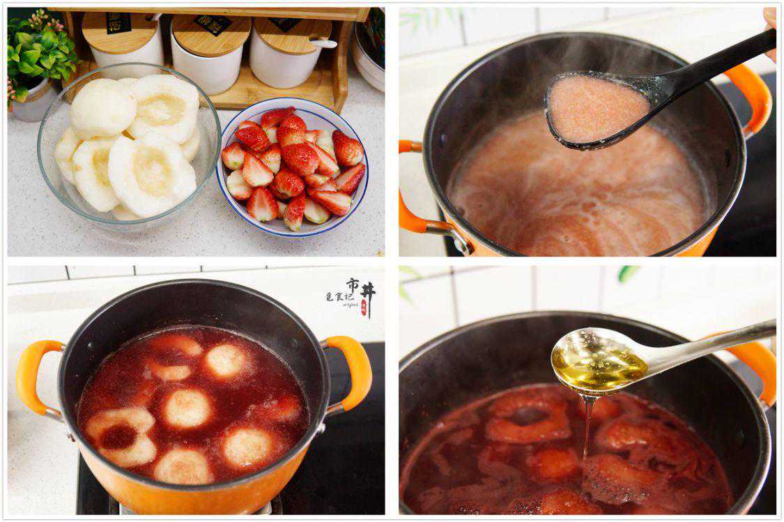 三、红酒蜜梨所需食材:雪梨4个,草莓十几颗,红酒1瓶,蜂蜜2大勺。