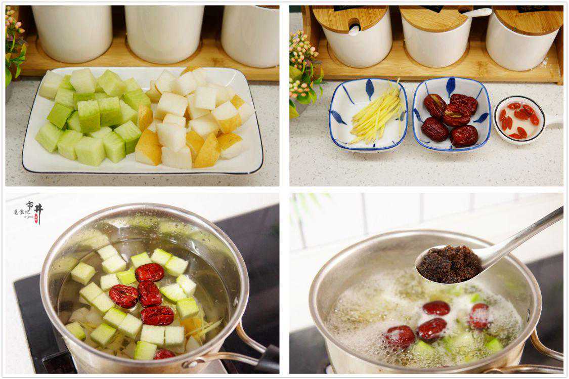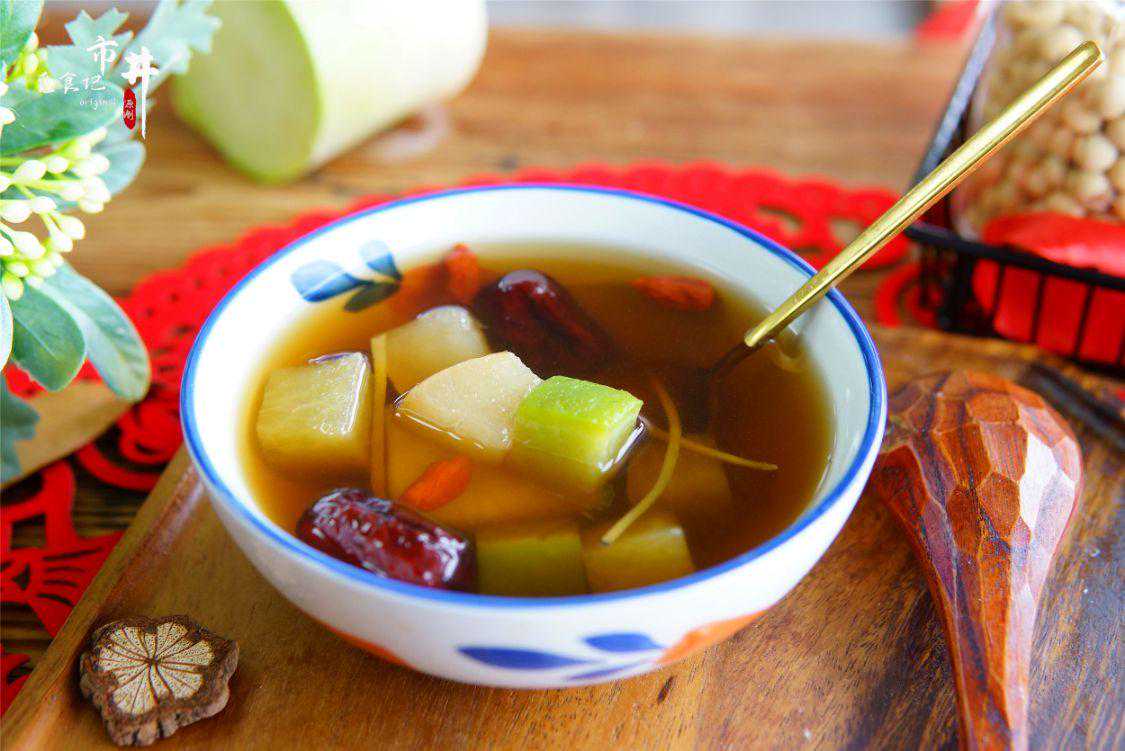 七、雪梨顺气汤所需食材:萝卜1根,梨1个,姜1块,红枣5颗,红糖1勺,枸杞少许。