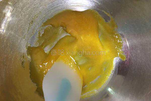 4、将10克砂糖加入蛋黄中,搅拌均匀