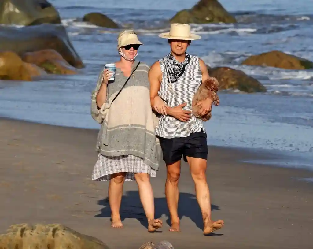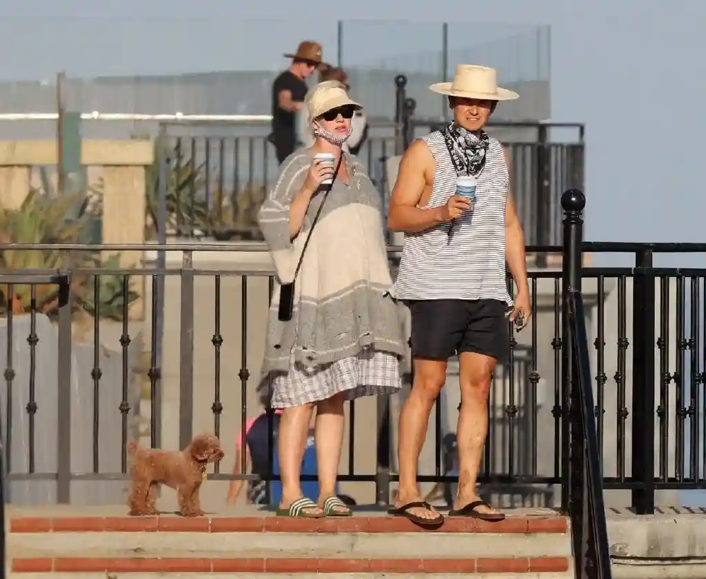 1905当地时间7月5日,美国加州,“水果姐”凯蒂·佩里和未婚夫“开花”奥兰多·布鲁姆,带着爱犬们现身圣塔芭芭拉海滩。