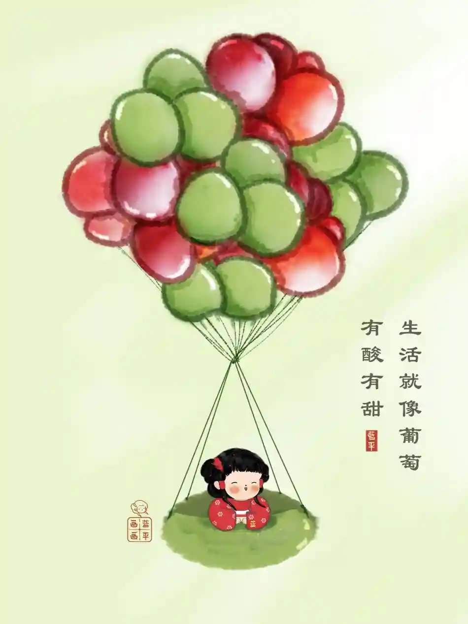我们都要好好生活,看遍烟火人间。把红色葡萄和绿色葡萄做成热气球的模样,载着葡萄遨游于宇宙之间。