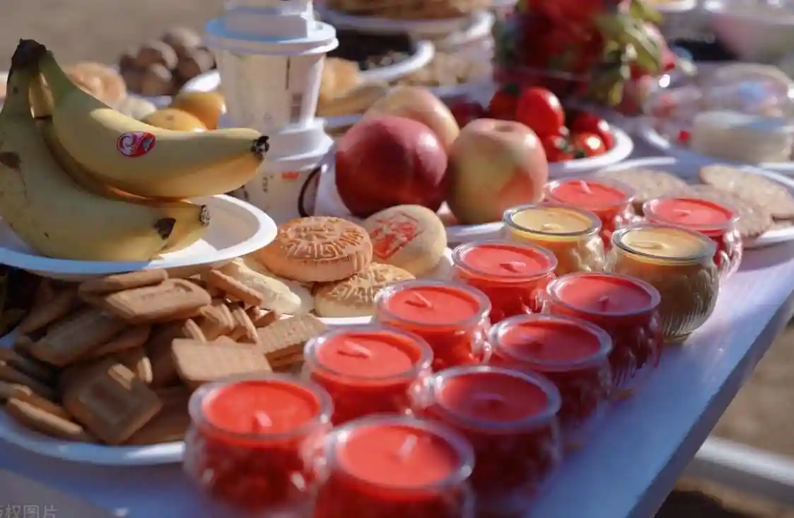 他们认为摆放的供果不能沾有荤腥味道,同时摆放的顺序也是有特定的要求,以表示对逝者的尊重。
